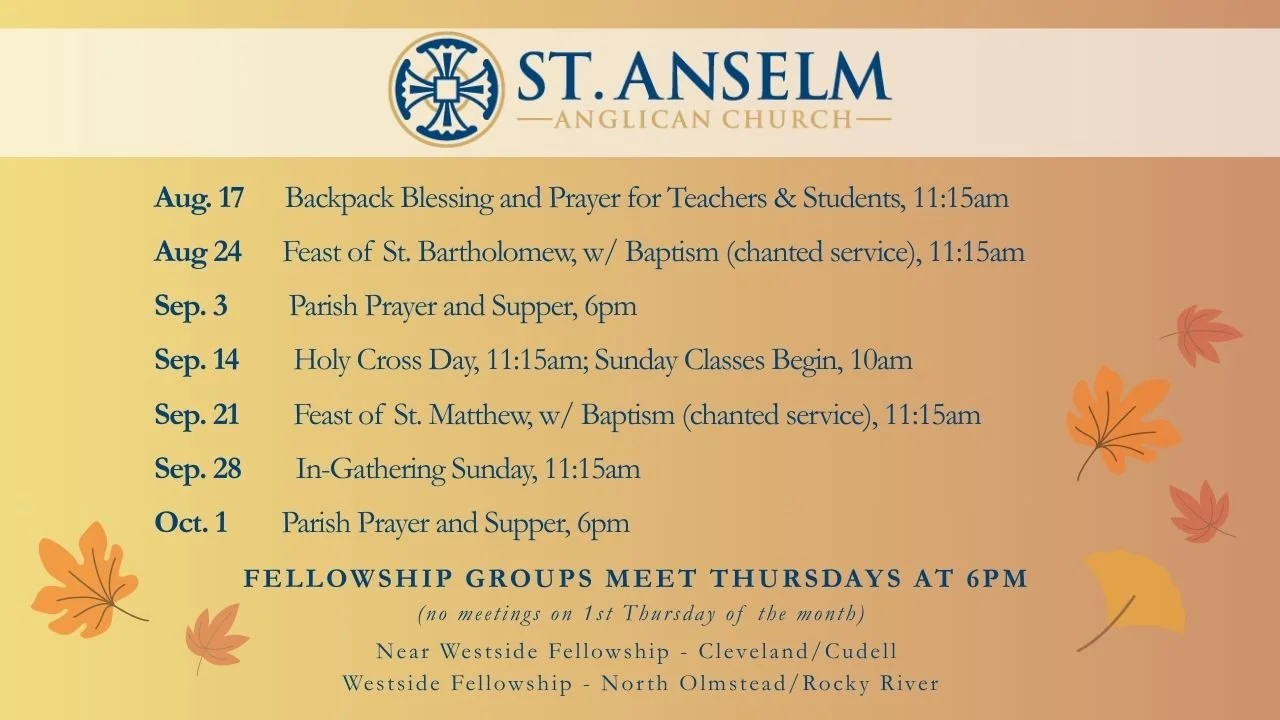 It’s back to school time in the Templeton household and in the Household of God too! We have a very exciting Fall planned here at St. Anselm Anglican Church. Confirmation class has begun already!